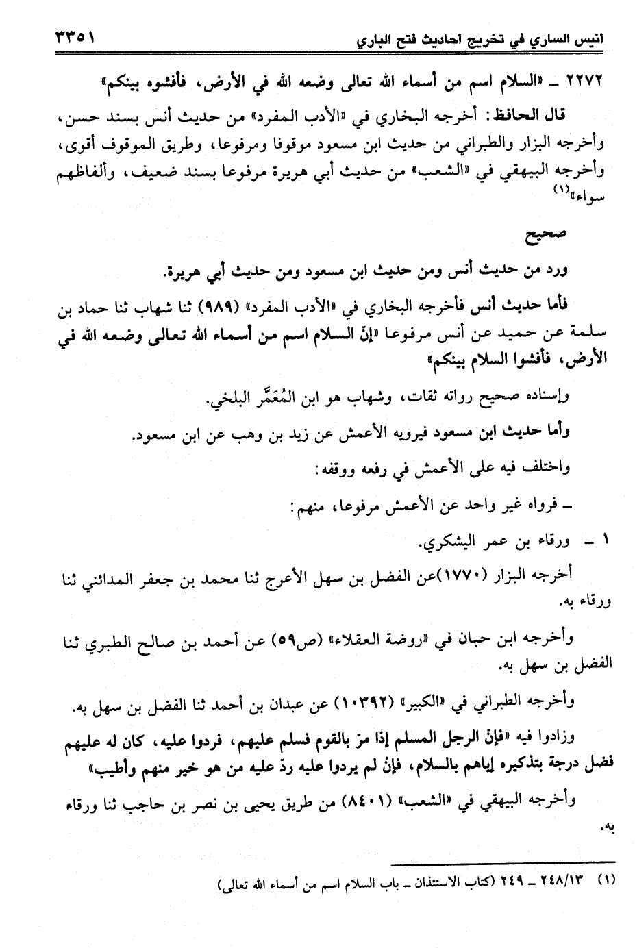 (¬1) 13/ 248 - 249 (كتاب الاستئذان -باب السلام اسم من أسماء الله تعالى)
