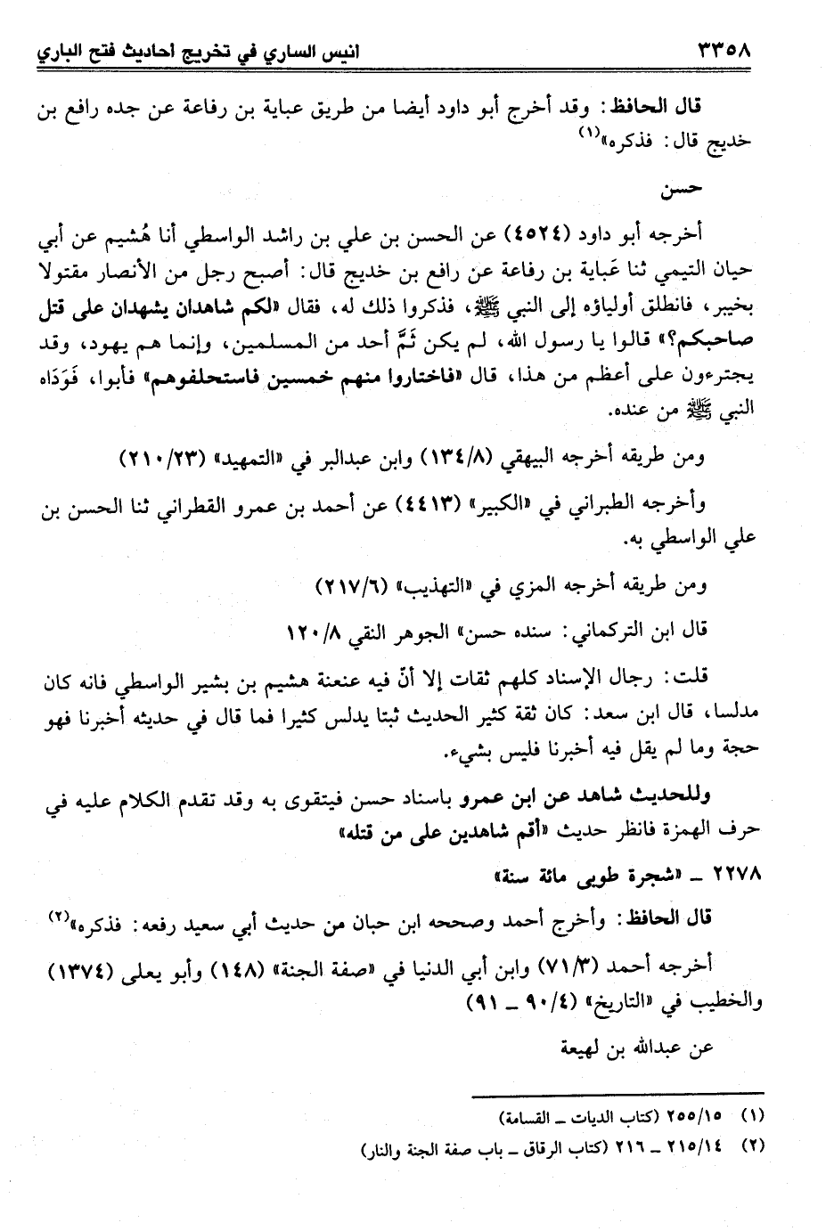قال الحافظ: وقد أخرج أبو داود أيضاً من طريق عباية بن رفاعة عن جده رافع بن خديج قال: فذكره" (¬1)