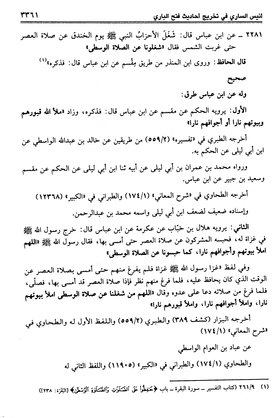 (¬1) 9/ 261 (كتاب التفسير- سورة البقرة- باب {حَافِظُوا عَلَى الصَّلَوَاتِ وَالصَّلَاةِ الْوُسْطَى} [البقرة: 238])