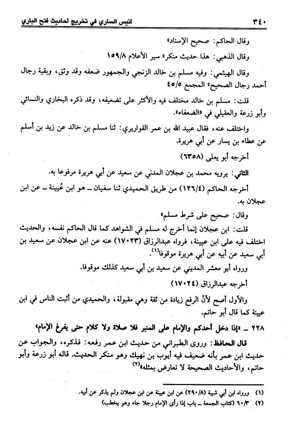 228 - "إذا دخل أحدكم والإمام على المنبر فلا صلاة ولا كلام حتى يفرغ الإمام"