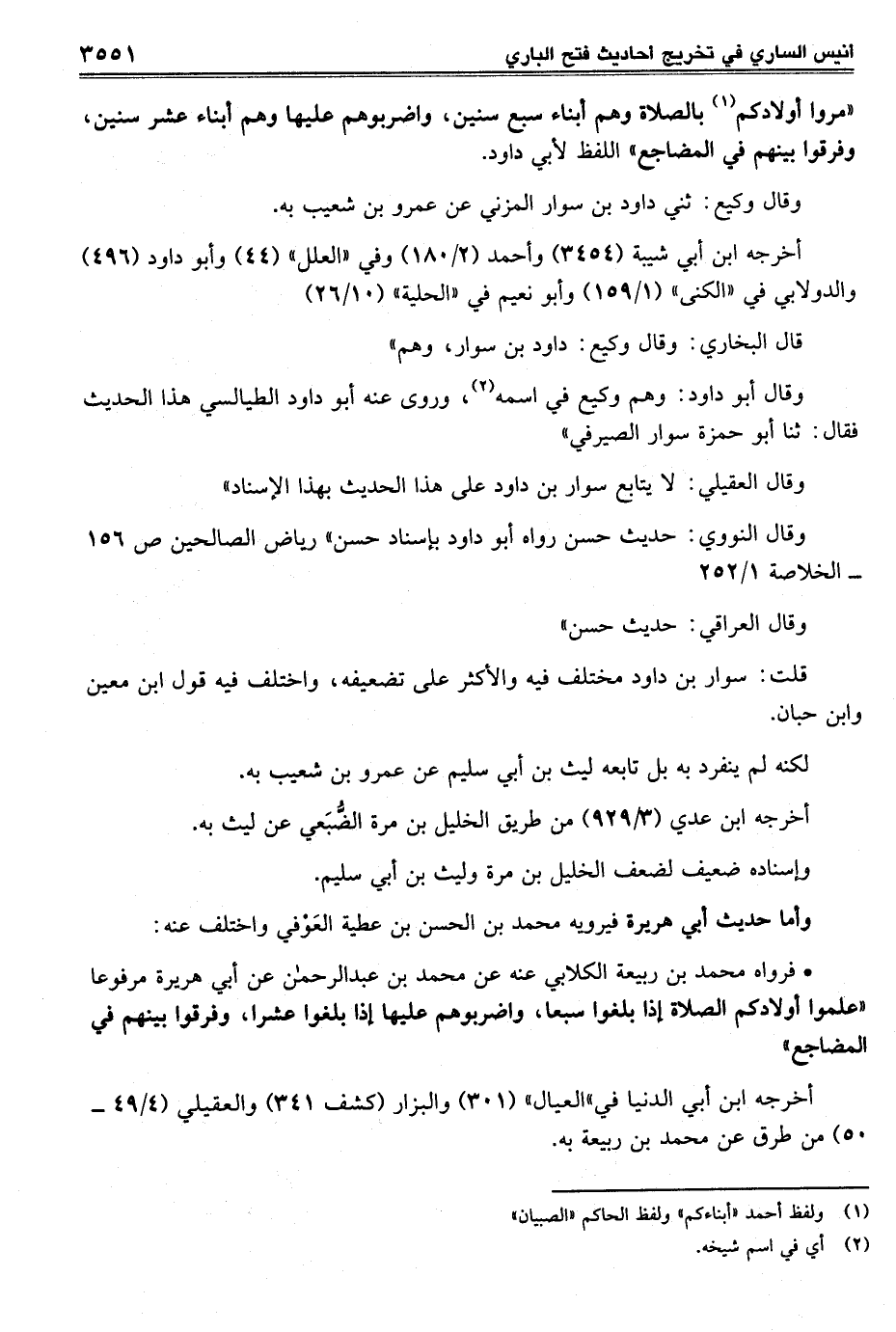 • فرواه محمد بن ربيعة الكلابي عنه عن محمد بن عبد الرحمن عن أبي هريرة مرفوعا "علموا أولادكم الصلاة إذا بلغوا سبعا، واضربوهم عليها إذا بلغوا عشرا، وفرقوا بينهم في المضاجع"