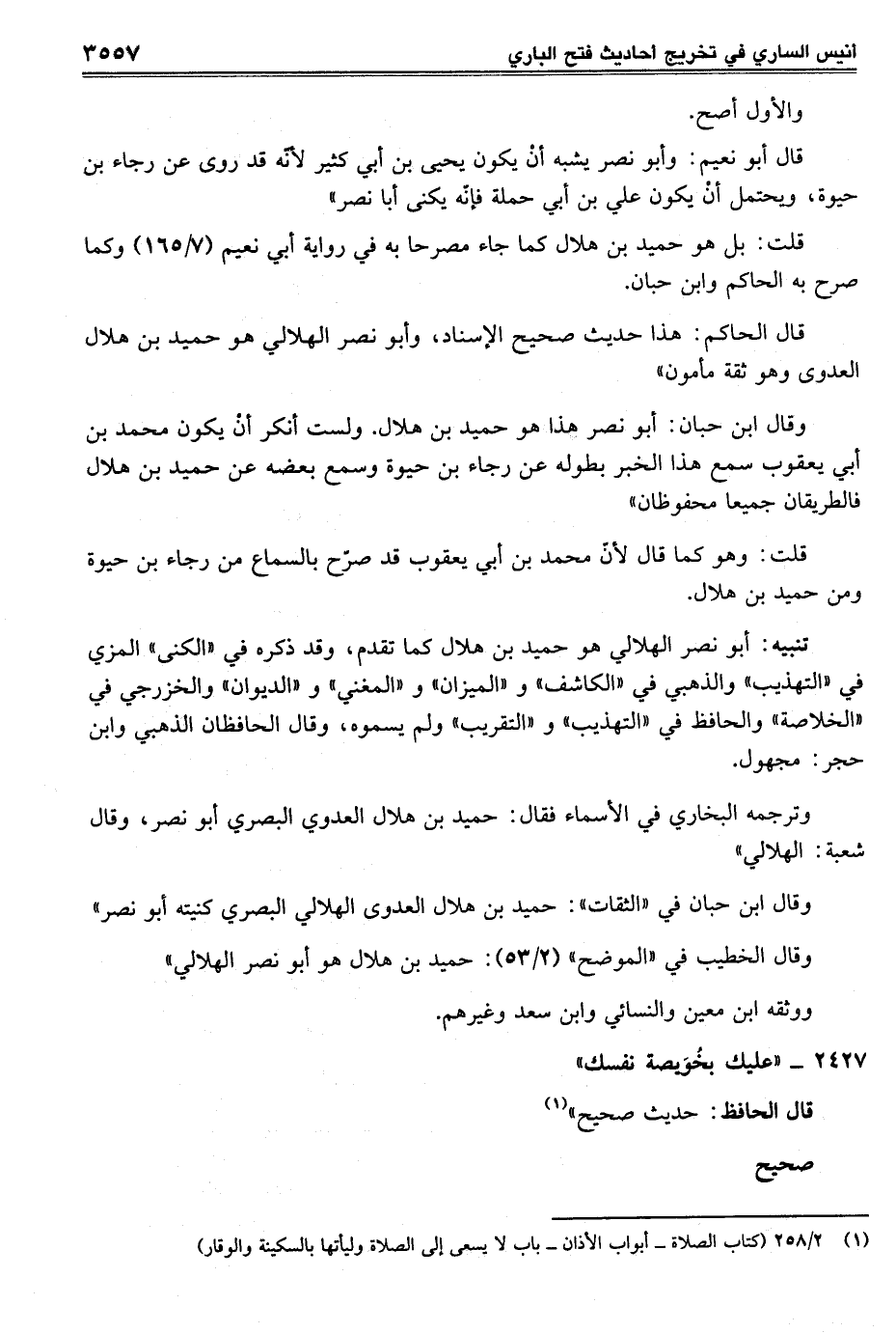 قال الحاكم: هذا حديث صحيح الإسناد، وأبو نصر الهلالي هو حميد بن هلال العدوى وهو ثقة مأمون"