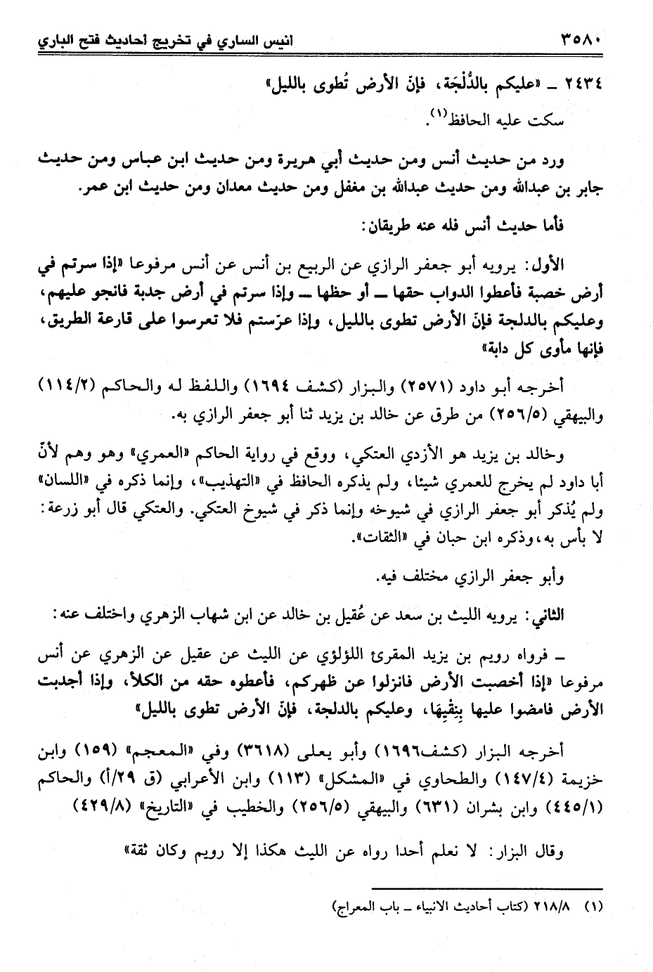2434 - "عليكم بالدُّلْجَة، فإنّ الأرض تُطوى بالليل"