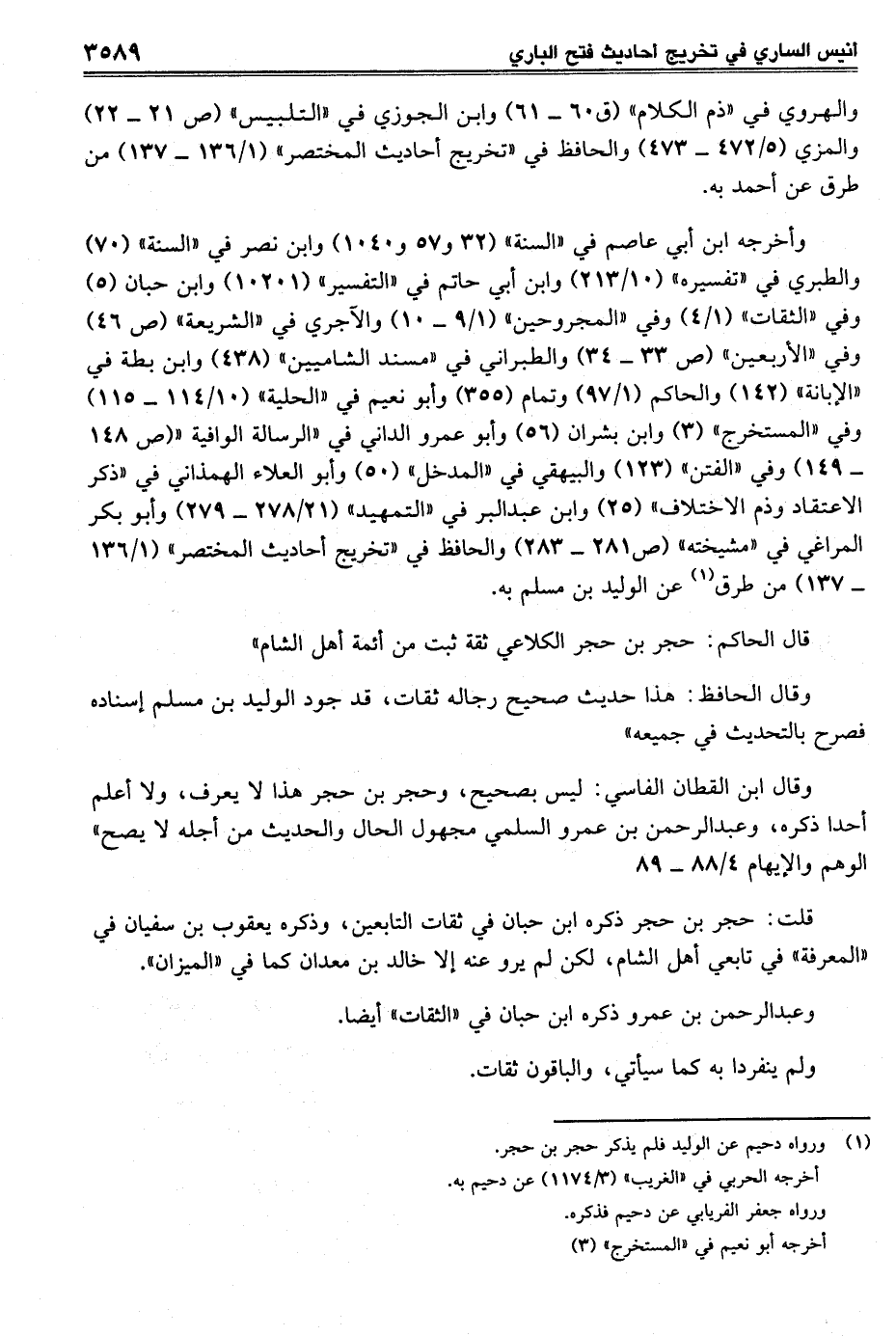 (¬1) ورواه دحيم عن الوليد فلم يذكر حجر بن حجر.