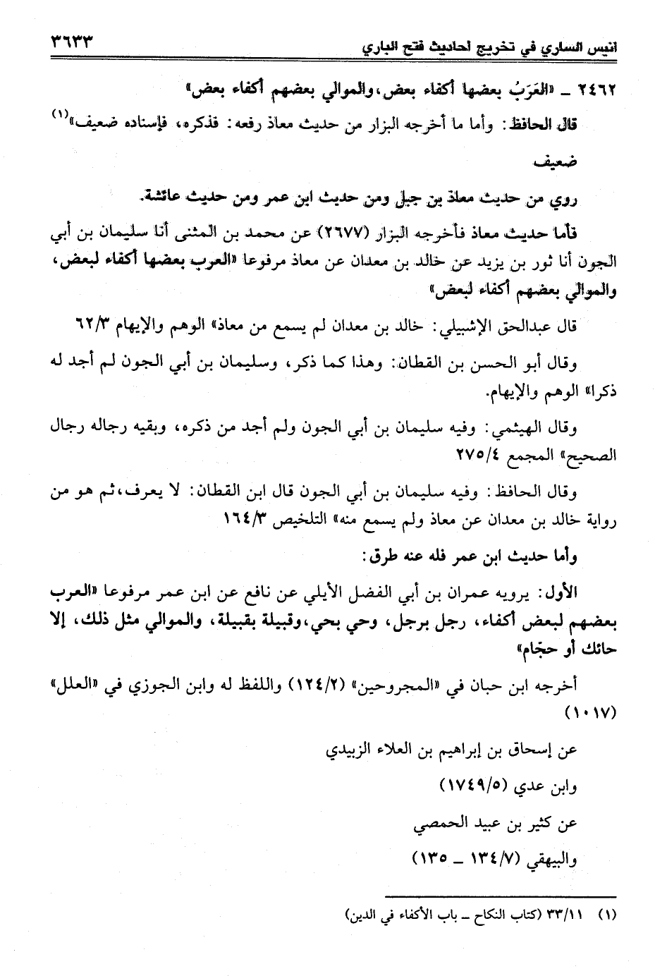 2462 - "العَرَبُ بعضها أكفاء بعض، والموالي بعضهم أكفاء بعض"