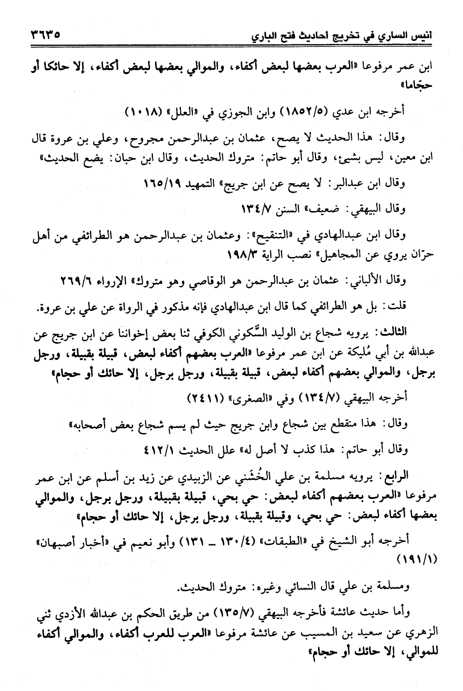 ابن عمر مرفوعا "العرب بعضها لبعض أكفاء، والموالي بعضها لبعض أكفاء، إلا حائكا أو حجّاما"