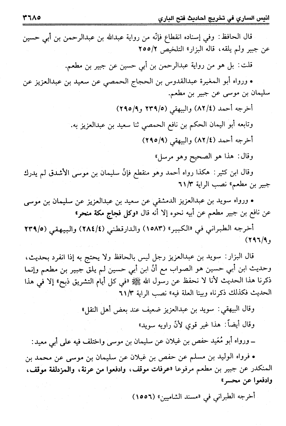 • ورواه سويد بن عبد العزيز الدمشقي عن سعيد بن عبد العزيز عن سليمان بن موسى عن نافع بن جبير مطعم عن أبيه نحوه إلا أنه قال "وكل فجاج مكة منحر"