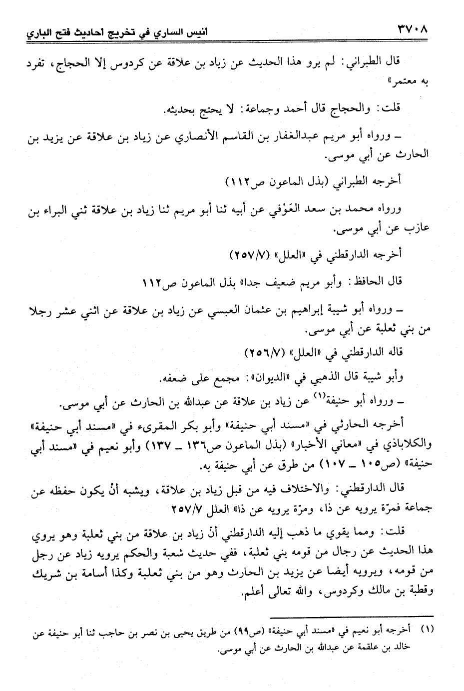 قلت: ومما يقوي ما ذهب إليه الدارقطني أنّ زياد بن علاقة من بني ثعلبة وهو يروي هذا الحديث عن رجال من قومه بني ثعلبة، ففي حديث شعبة والحكم يرويه زياد عن رجل من قومه، ويرويه أيضاً عن يزيد بن الحارث وهو من بني ثعلبة وكذا أسامة بن شريك وقطبة بن مالك وكردوس، والله تعالى أعلم.