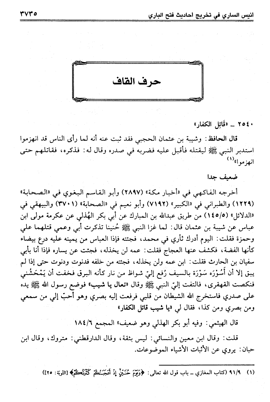 (¬1) 9/ 91 (كتاب المغازي - باب قول الله تعالى: {وَيَوْمَ حُنَيْنٍ إِذْ أَعْجَبَتْكُمْ كَثْرَتُكُمْ} [التوبة: 25])
