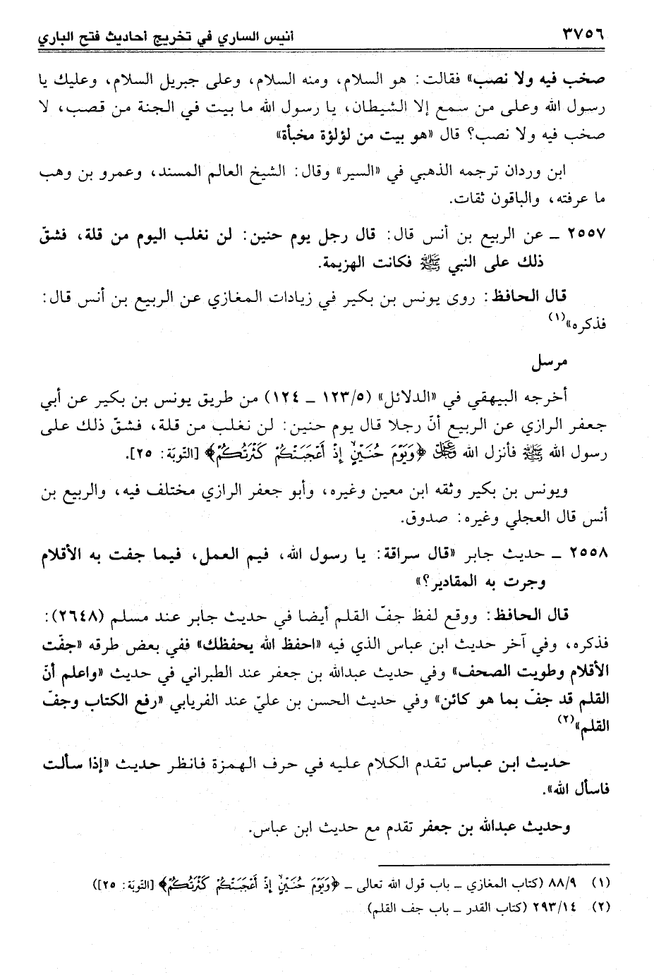 (¬1) 9/ 88 (كتاب المغازي - باب قول الله تعالى- {وَيَوْمَ حُنَيْنٍ إِذْ أَعْجَبَتْكُمْ كَثْرَتُكُمْ} [التوبة: 25])