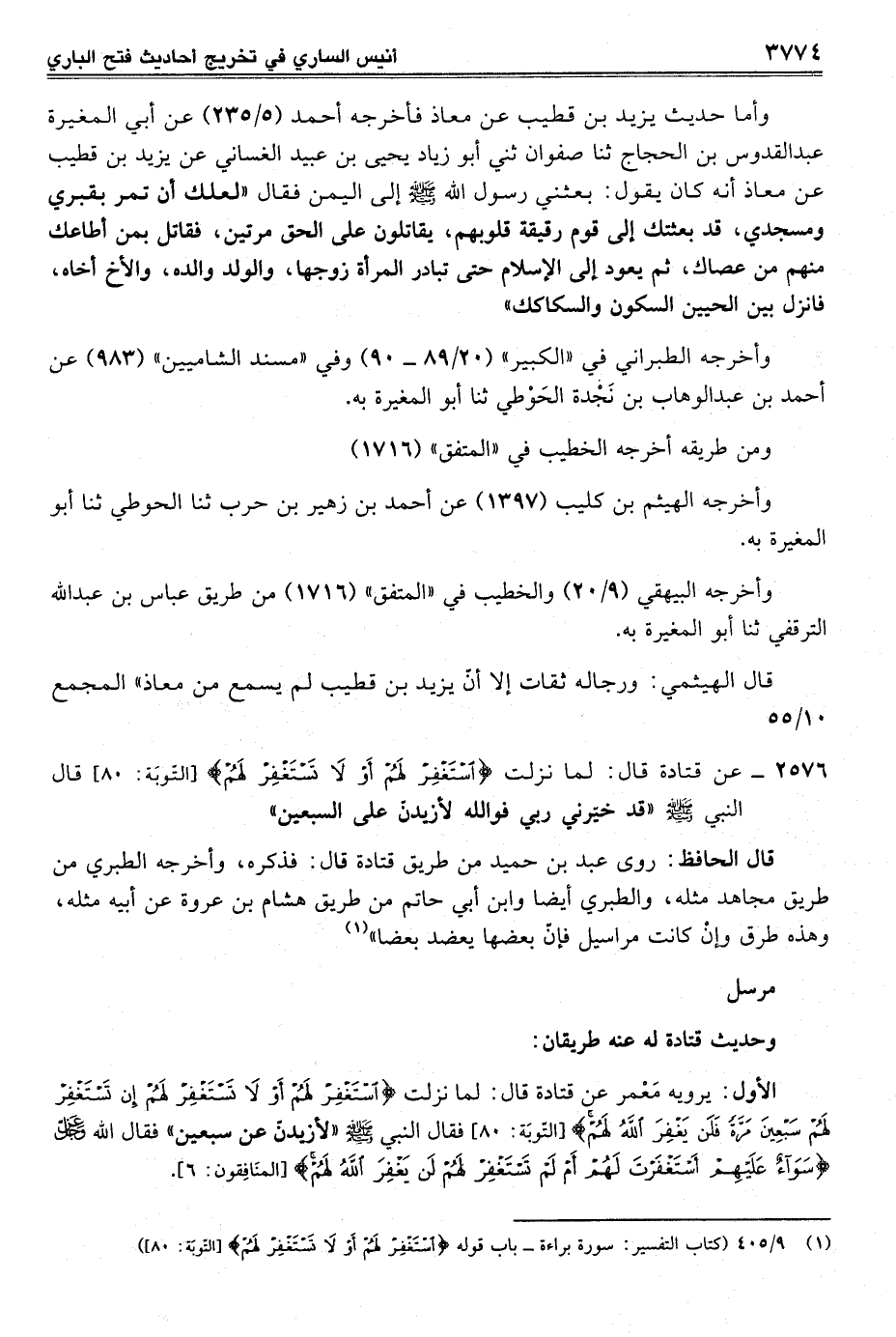 (¬1) 9/ 405 (كتاب التفسير: سورة براءة - باب قوله {اسْتَغْفِرْ لَهُمْ أَوْ لَا تَسْتَغْفِرْ لَهُمْ} [التوبة: 80])