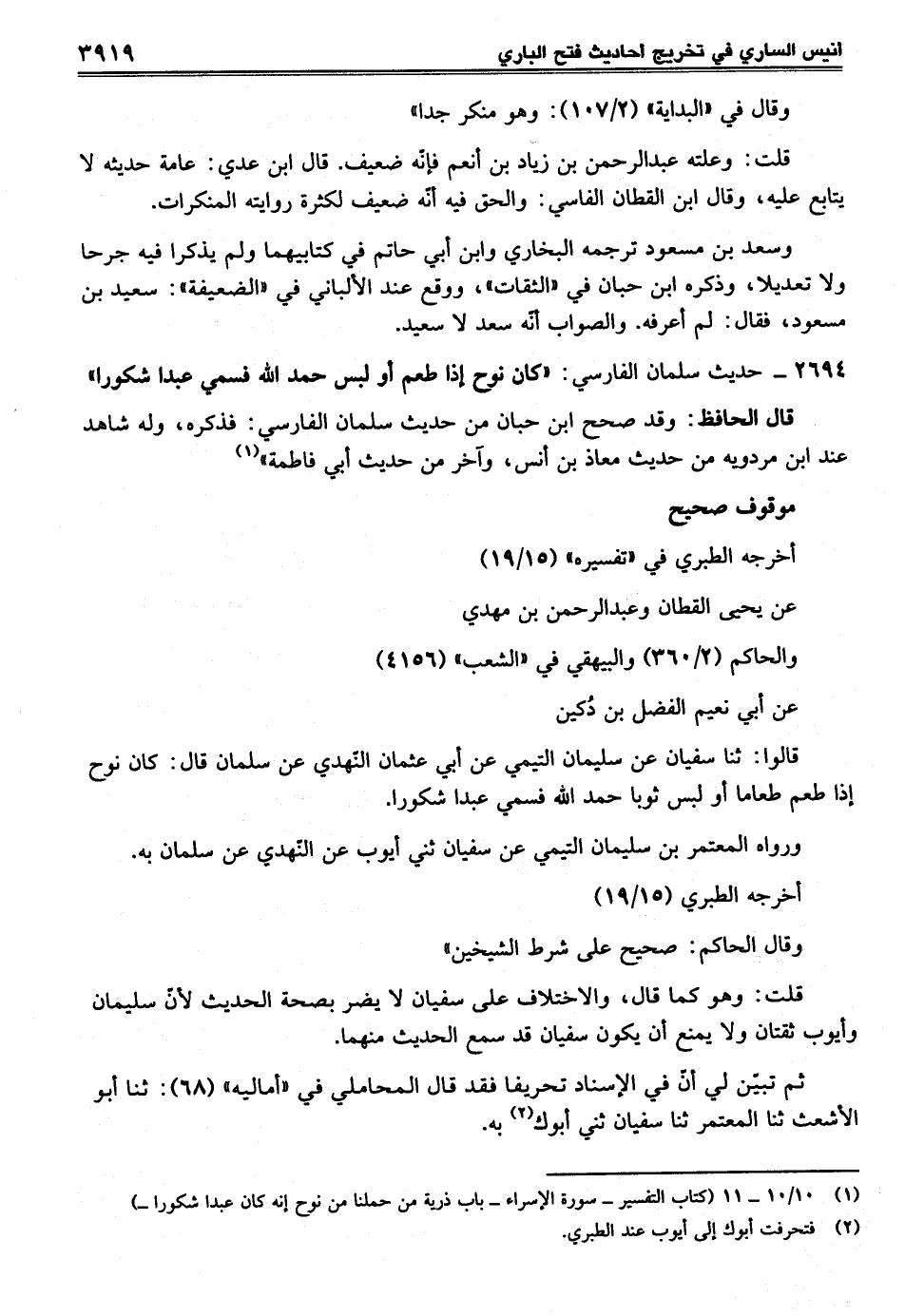 (¬1) 10/ 10 - 11 (كتاب التفسير - سورة الإسراء -باب ذرية من حملنا من نوح إنه كان عبدا شكورا-)