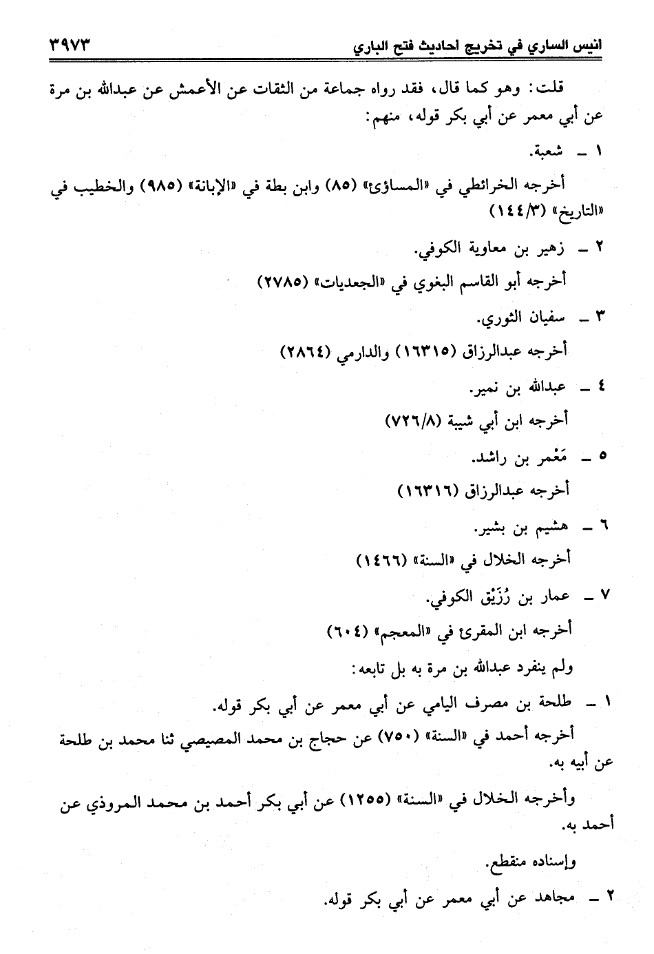 1 - طلحة بن مصرف اليامي عن أبي معمر عن أبي بكر قوله.