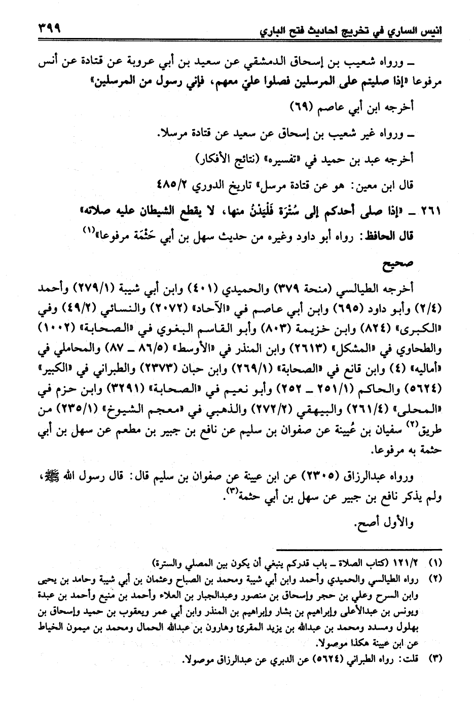 261 - "إذا صلي أحدكم إلى سُتْرَة فَلْيَدْنُ منها, لا يقطع الشيطان عليه صلاته"