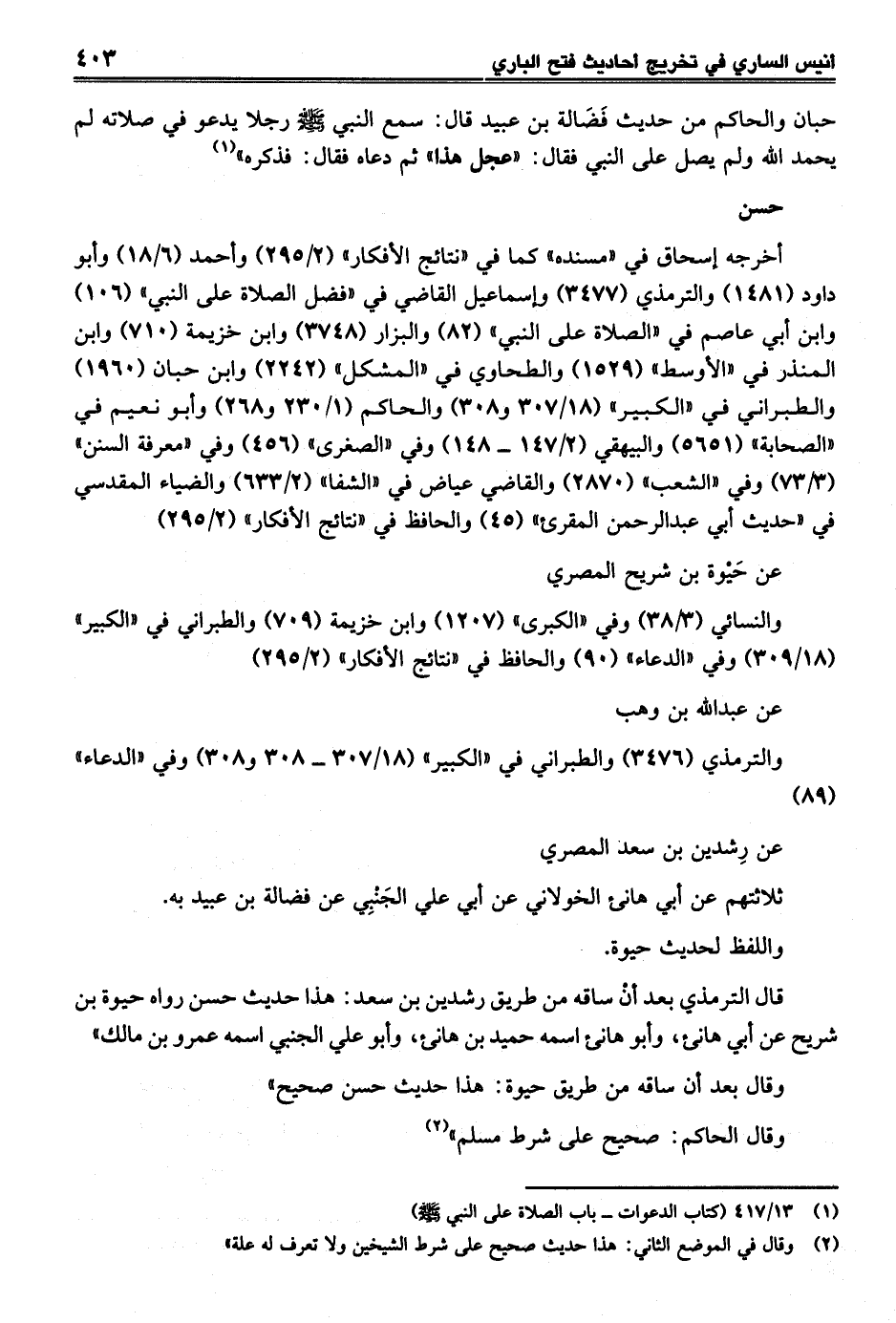 قال الترمذي بعد أنْ ساقه من طريق رشدين بن سعد: هذا حديث حسن رواه حيوة بن شريح عن أبي هانئ, وأبو هانئ اسمه حميد بن هانئ وأبو علي الجنبي اسمه عمرو بن مالك"