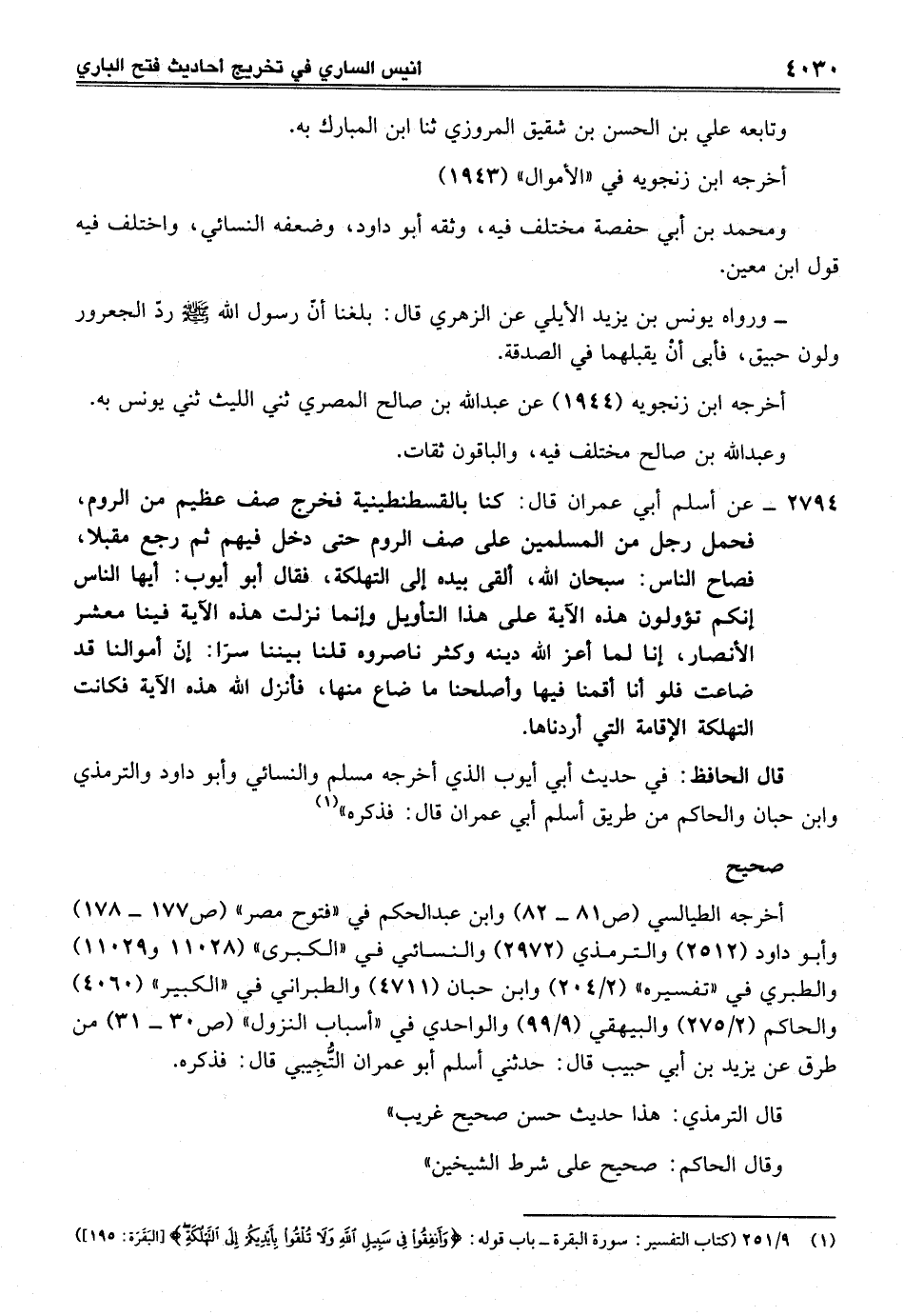 (¬1) 9/ 251 (كتاب التفسير: سورة البقرة - باب قوله: {وَأَنْفِقُوا فِي سَبِيلِ اللَّهِ وَلَا تُلْقُوا بِأَيْدِيكُمْ إِلَى التَّهْلُكَةِ} [البقرة: 195])