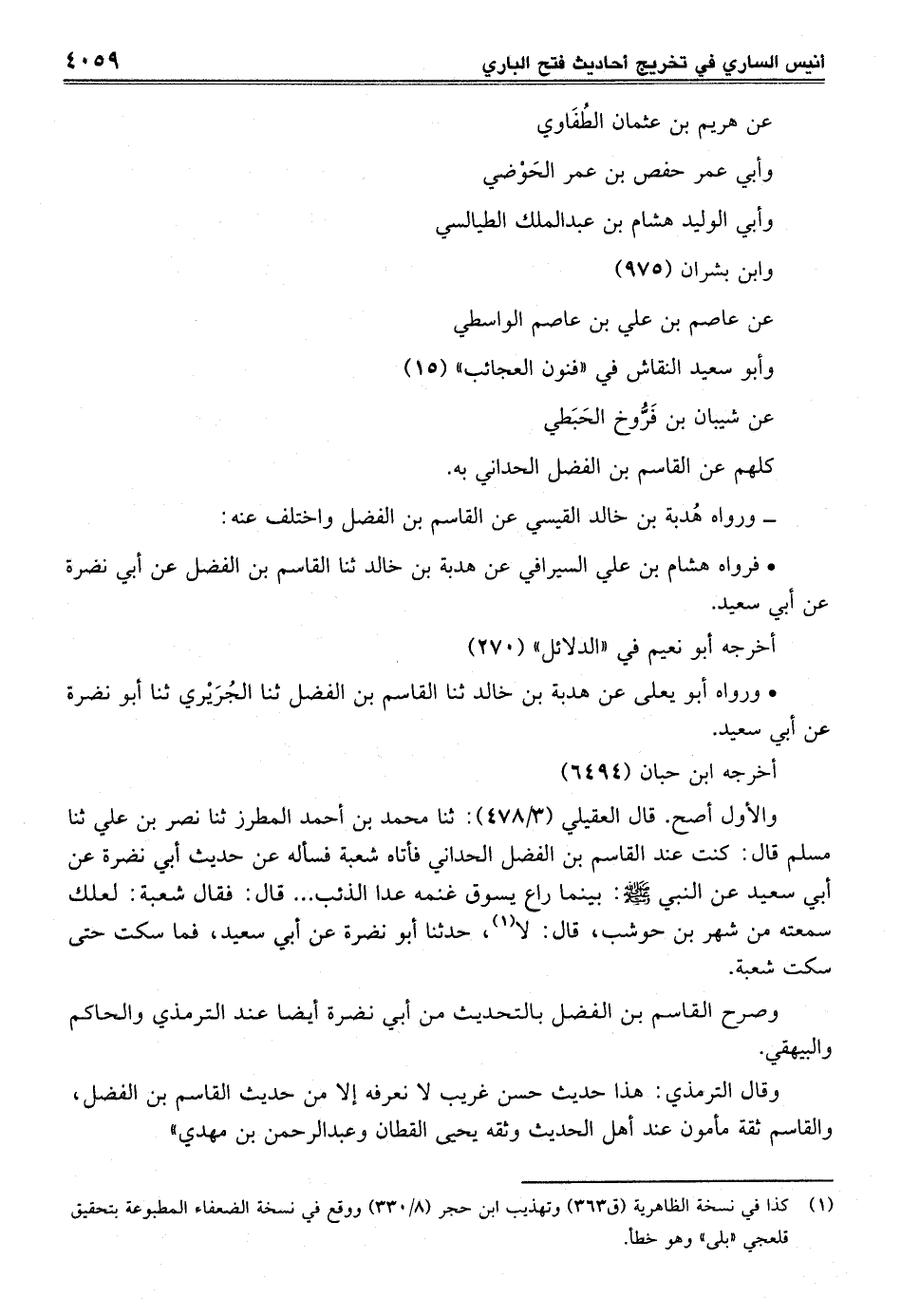 • فرواه هشام بن علي السيرافي عن هدبة بن خالد ثنا القاسم بن الفضل عن أبي نضرة عن أبي سعيد.