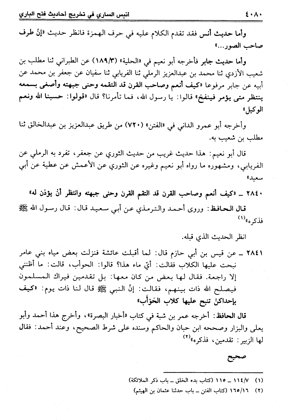 2840 - "كيف أنعم وصاحب القرن قد التقم القرن وحنى جبهته وانتظر أنْ يؤذن له"
