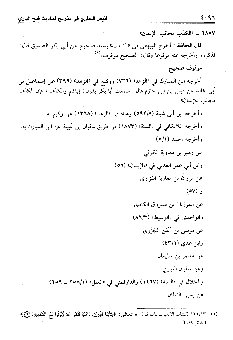 (¬1) 13/ 121 (كتاب الأدب - باب قول الله تعالى: {يَا أَيُّهَا الَّذِينَ آمَنُوا اتَّقُوا اللَّهَ وَكُونُوا مَعَ الصَّادِقِينَ (119)} [التوبة: 119])