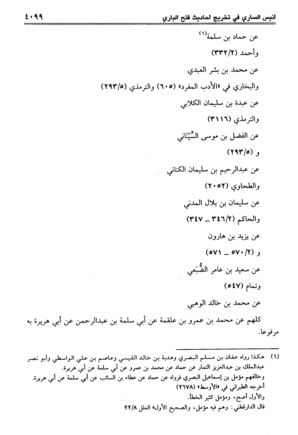 (¬1) هكذا رواه عفان بن مسلم البصري وهدبة بن خالد القيسي وعاصم بن علي الواسطي وأبو نصر