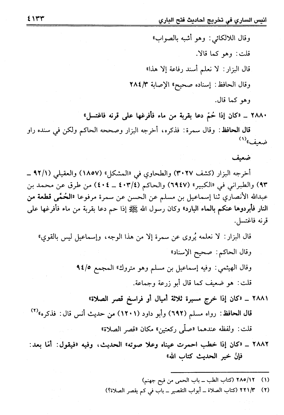 2881 - "كان إذا خرج مسيرة ثلاثة أميال أو فراسخ قصر الصلاة"