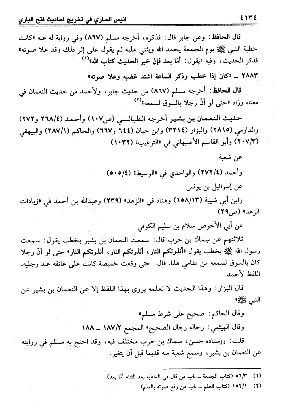 2883 - "كان إذا خطب وذكر الساعة اشتد غضبه وعلا صوته"