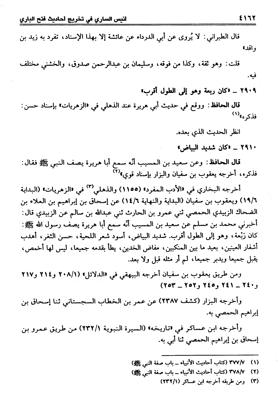 قال الحافظ: وعن سعيد بن المسيب أنّه سمع أبا هريرة يصف النبي - صلى الله عليه وسلم - فقال: فذكره، أخرجه يعقوب بن سفيان والبزار بإسناد قوي" (¬2)