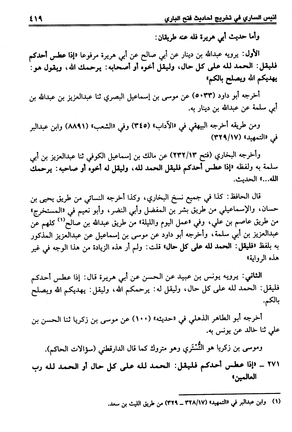 271 - "إذا عطس أحدكم فليقل: الحمد لله على كل حال أو الحمد لله رب العالمين"