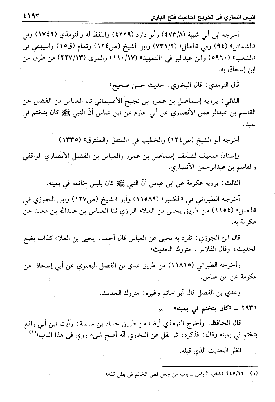 كتاب أنيس الساري (تخريج أحاديث فتح الباري) (اسم الجزء: 6)