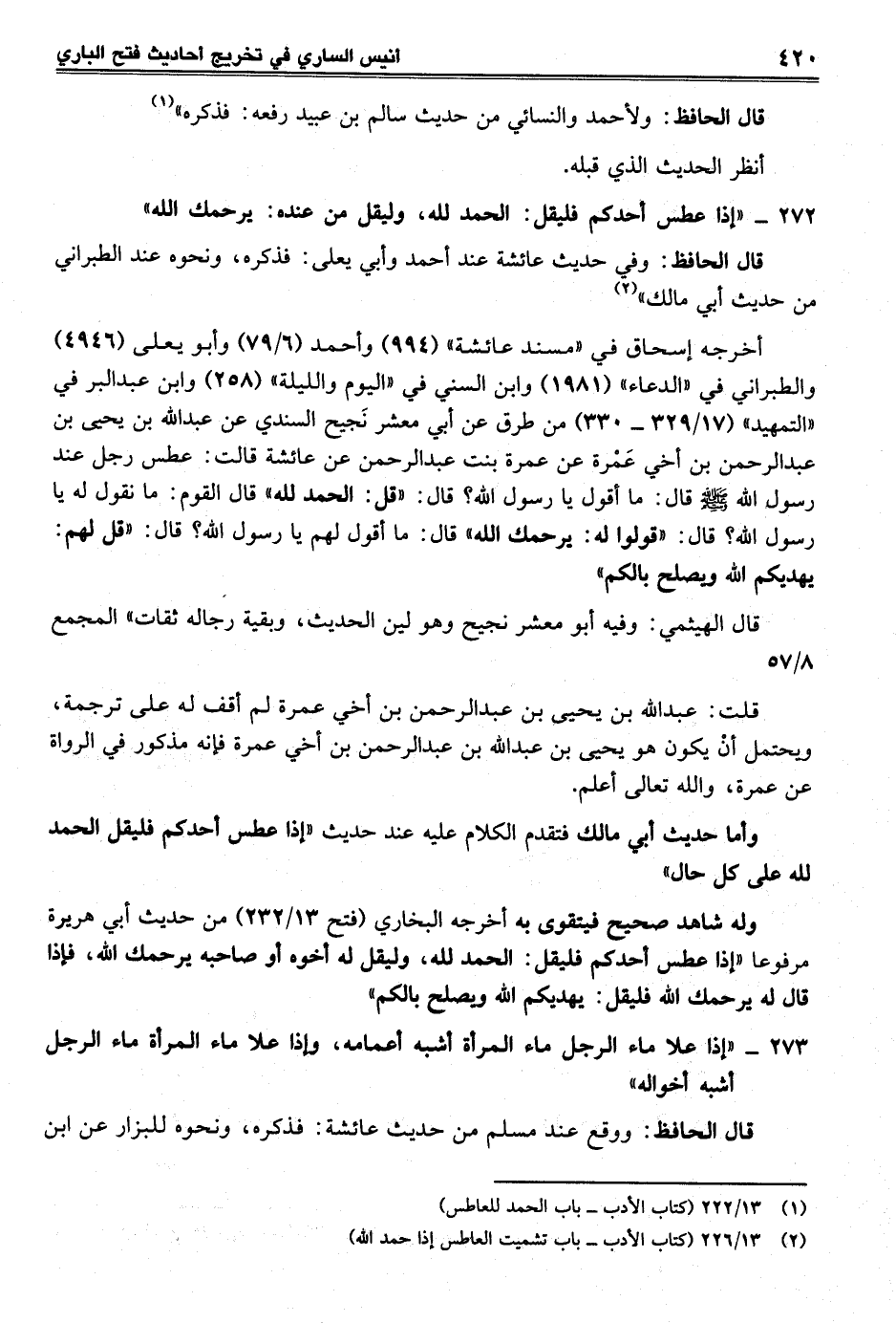(¬2) 13/ 226 (كتاب الأدب - باب تشميت العاطس إذا حمد الله)