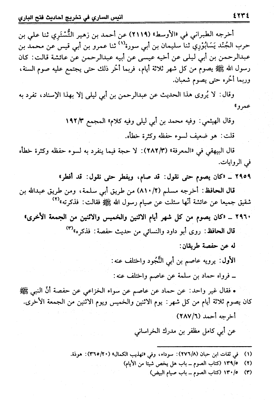 2960 - "كان يصوم من كل شهر أيام الاثنين والخميس والاثنين من الجمعة الأخرى"