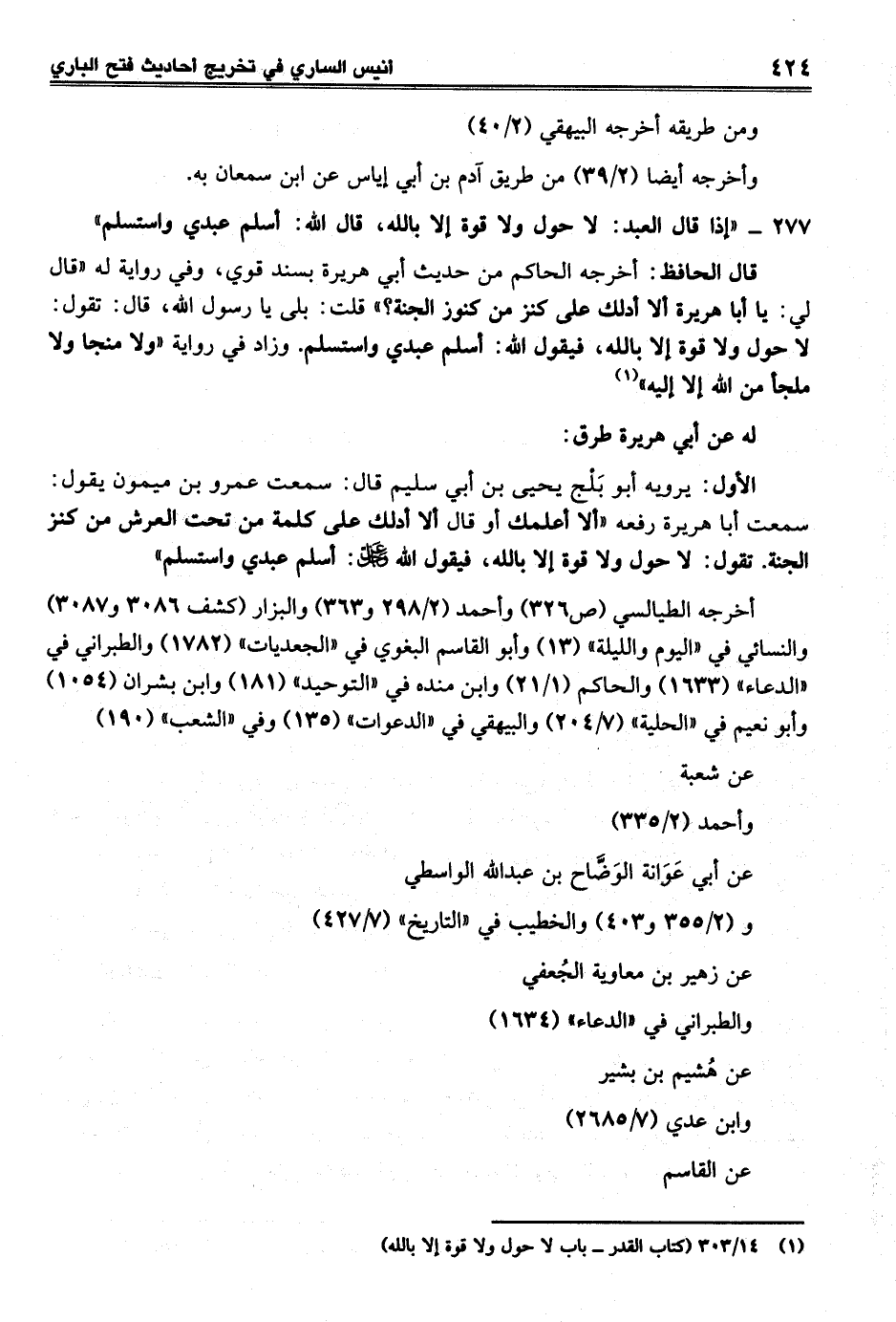 (¬1) 14/ 303 (كتاب القدر - باب لا حول ولا قوة إلا بالله)
