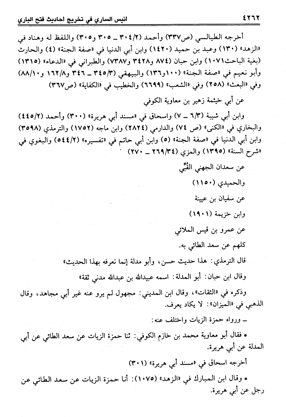 • وقال ابن المبارك في "الزهد" (1075): أنا حمزة الزيات عن سعد الطائي عن رجل عن أبي هريرة.