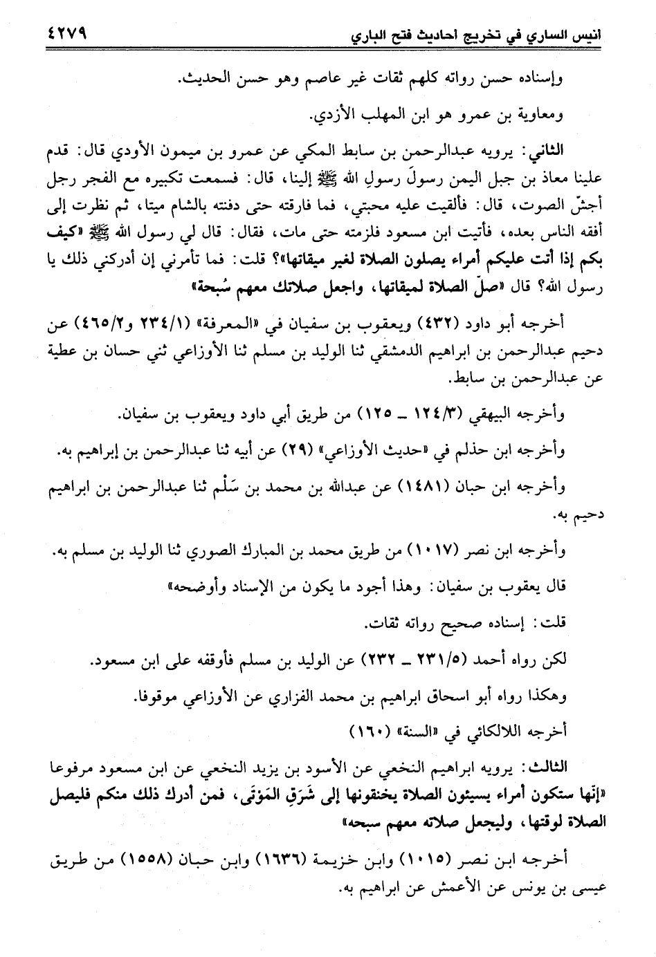 الثالث: يرويه إبراهيم النخعي عن الأسود بن يزيد النخعي عن ابن مسعود مرفوعاً "إنّها ستكون أمراء يسيئون الصلاة يخنقونها إلى شَرَقِ المَوْتَى، فمن أدرك ذلك منكم فليصل الصلاة لوقتها، وليجعل صلاته معهم سبحة"