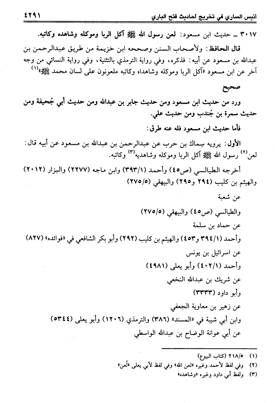 3017 - حديث ابن مسعود: لعن رسول الله صلى الله عليه وسلم آكل الربا وموكله وشاهده وكاتبه.