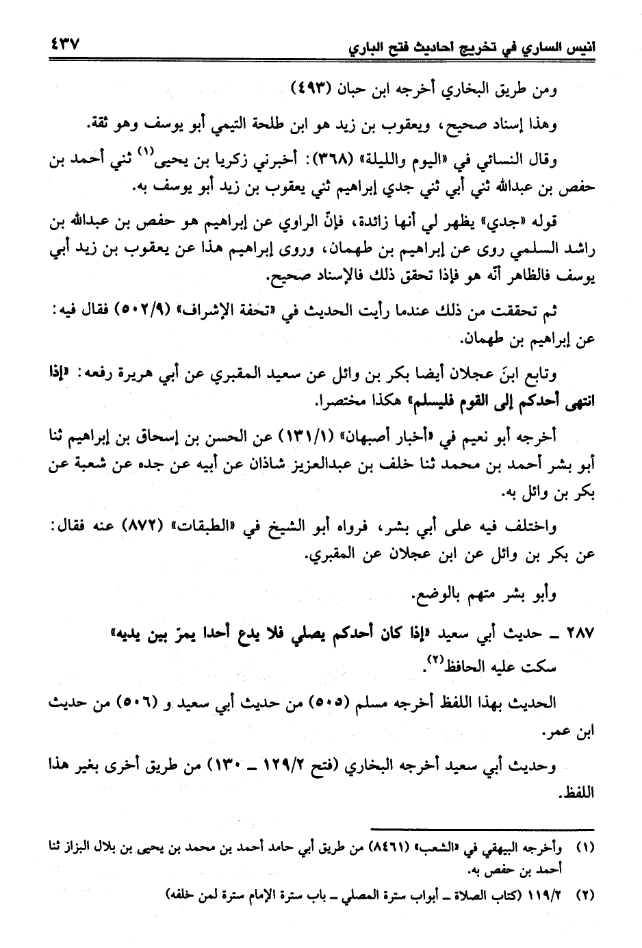 287 - حديث أبي سعيد "إذا كان أحدكم يصلي فلا يدع أحدا يمرّ بين يديه"