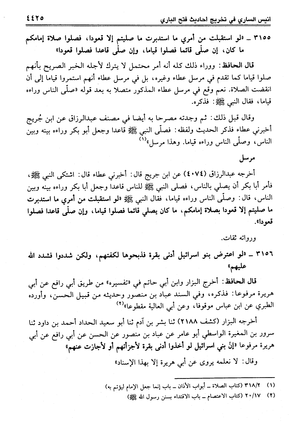 3155 - "لو استقبلت من أمري ما استدبرت ما صليتم إلا قعودا، فصلوا صلاة إمامكم ما كان، إن صلّى قائما فصلوا قياما، وإن صلّى قاعدا فصلوا قعودا"