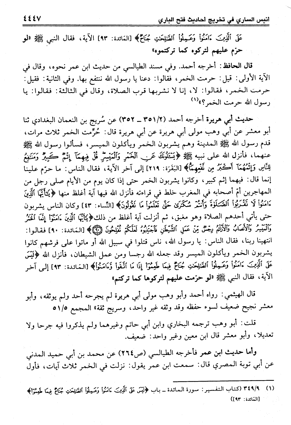 (¬1) 9/ 349 (كتاب التفسير: سورة المائدة- باب {لَيْسَ عَلَى الَّذِينَ آمَنُوا وَعَمِلُوا الصَّالِحَاتِ جُنَاحٌ فِيمَا طَعِمُوا} [المائدة: 93])