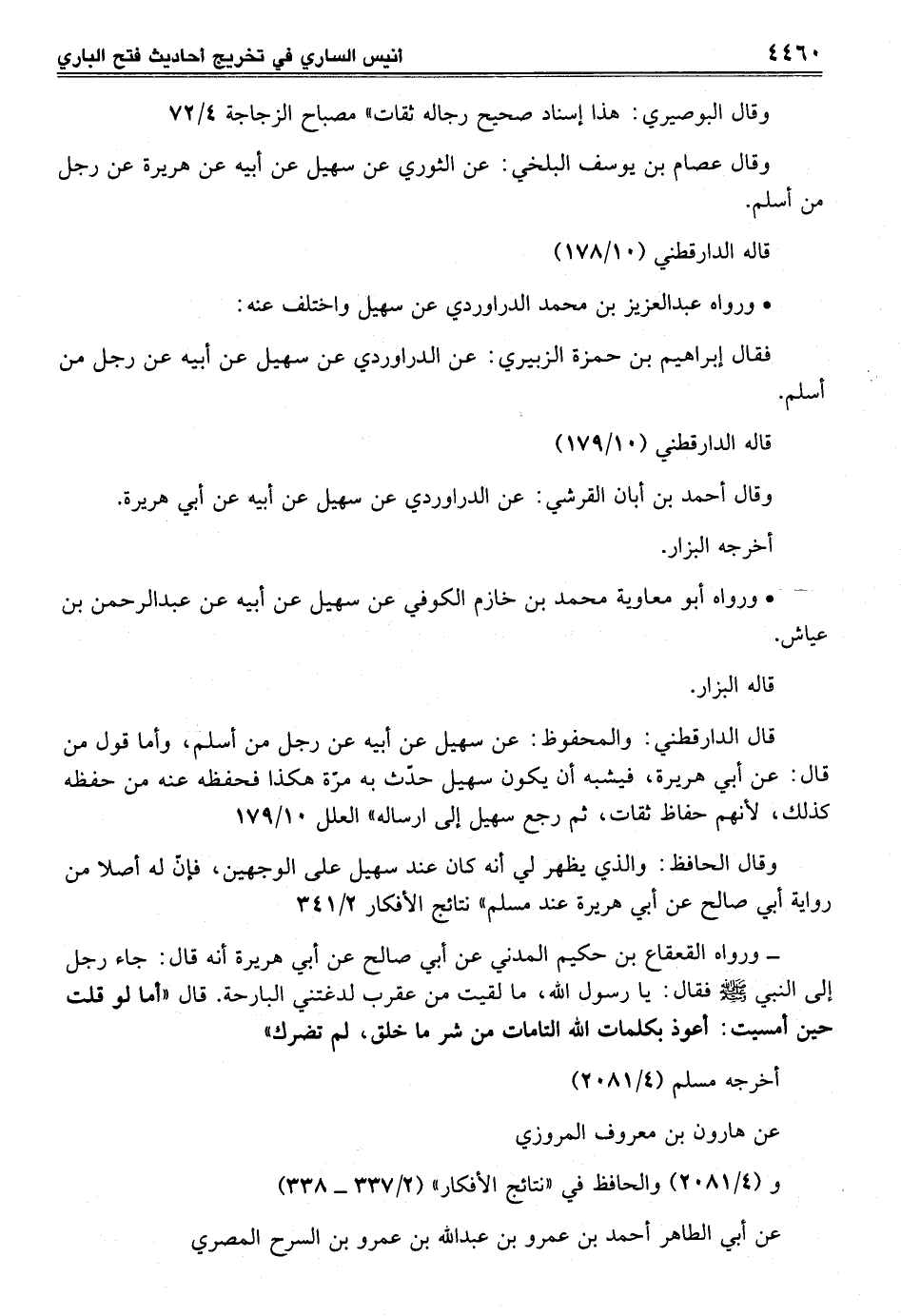 قال الدارقطني: والمحفوظ: عن سهيل عن أبيه عن رجل من أسلم، وأما قول من قال: عن أبي هريرة، فيشبه أن يكون سهيل حدّث به مرّة هكذا فحفظه عنه من حفظه كذلك، لأنهم حفاظ ثقات، ثم رجع سهيل إلى ارساله" العلل 10/ 179