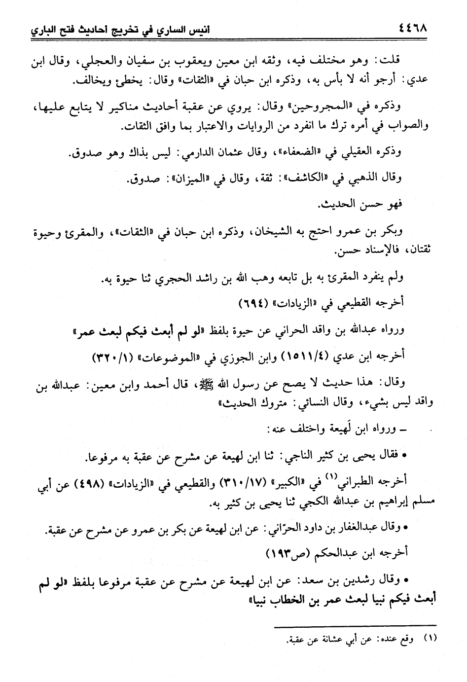 • وقال عبد الغفار بن داود الحرّاني: عن ابن لهيعة عن بكر بن عمرو عن مشرح عن عقبة.