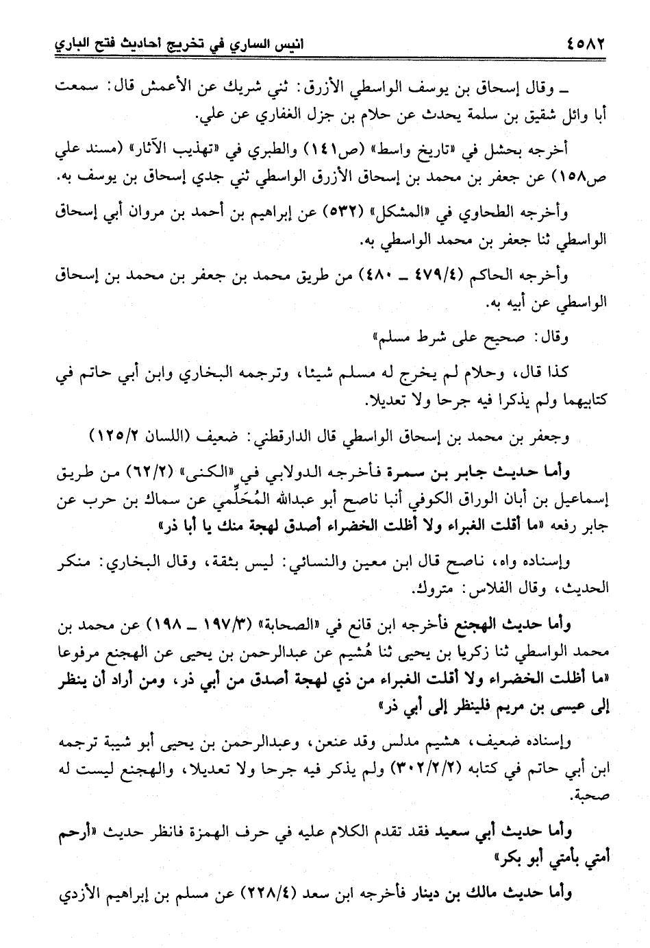 كتاب أنيس الساري (تخريج أحاديث فتح الباري) (اسم الجزء: 7)