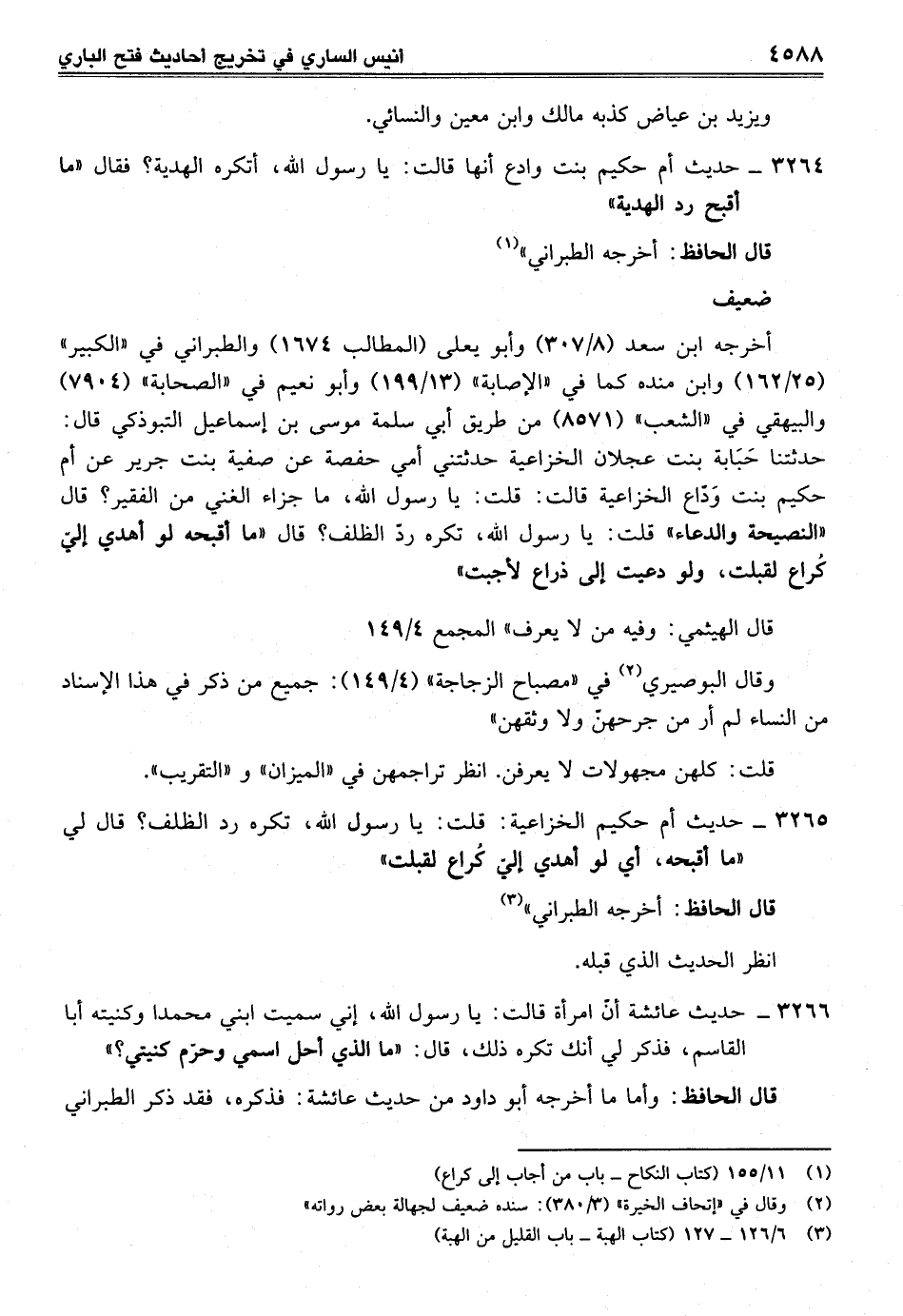 3264 - حديث أم حكيم بنت وادع أنها قالت: يا رسول الله، أتكره الهدية؟ فقال "ما أقبح رد الهدية"