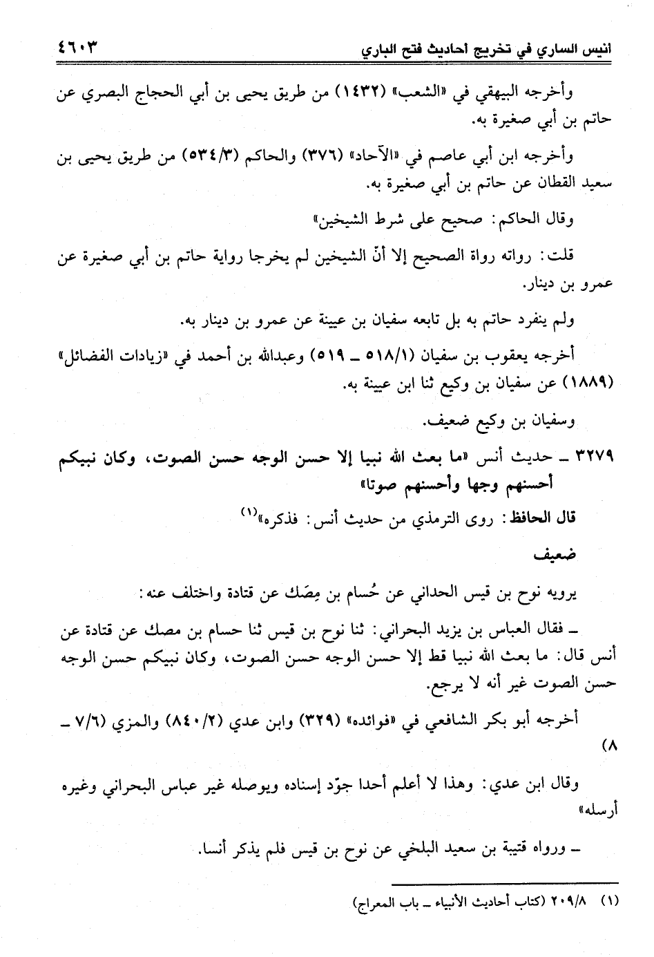 3279 - حديث أنس "ما بعث الله نبيا إلا حسن الوجه حسن الصوت، وكان نبيكم أحسنهم وجها وأحسنهم صوتا"