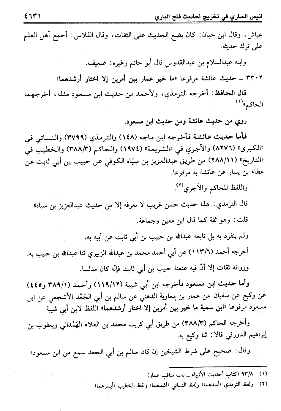 3302 - حديث عائشة مرفوعا "ما خير عمار بين أمرين إلا اختار أرشدهما"