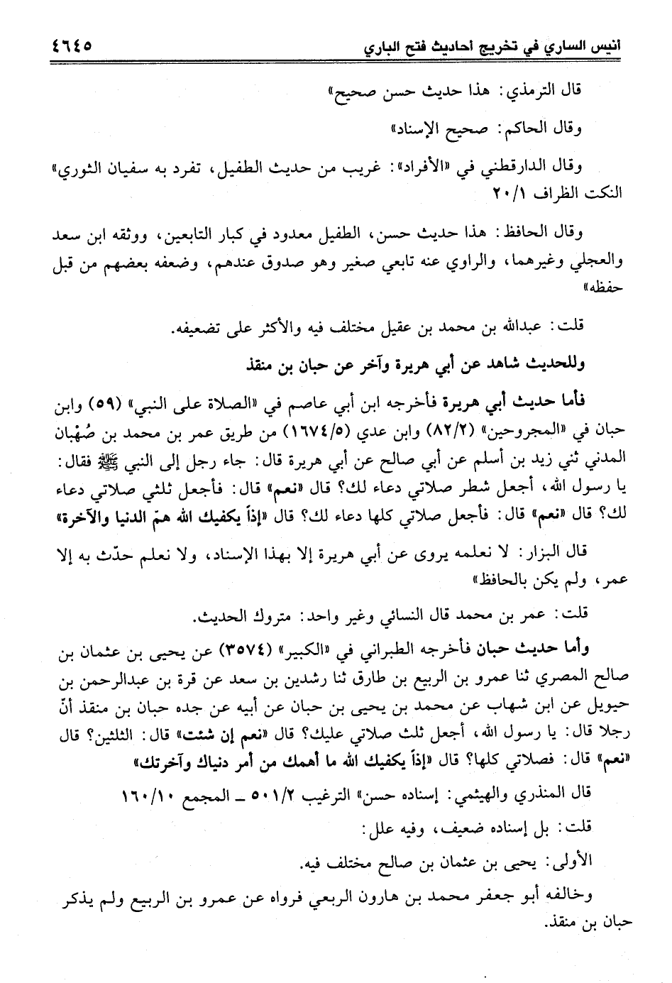 وقال الحافظ: هذا حديث حسن، الطفيل معدود في كبار التابعين، ووثقه ابن سعد والعجلي وغيرهما، والراوي عنه تابعي صغير وهو صدوق عندهم، وضعفه بعضهم من قبل حفظه"