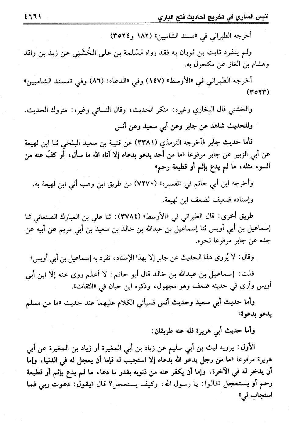 الأول: يرويه ليث بن أبي سليم عن زياد بن أبي المغيرة أو زياد بن المغيرة عن أبي هريرة مرفوعا "ما من رجل يدعو الله بدعاء إلا استجيب له فإما أن يعجل له في الدنيا، "إما أن يدخر له في الآخرة، وإما أن يكفر عنه من ذنوبه بقدر ما دعا، ما لم يدع بإثم أو قطيعة رحم أو يستعجل "قالوا: يا رسول الله، وكيف يستعجل؟ قال "يقول: دعوت ربي فما استجاب لي"
