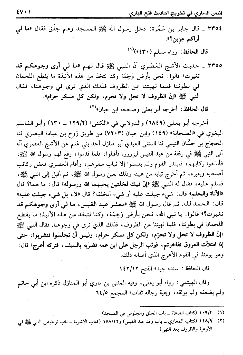 (¬2) 9/ 148 (كتاب المغازي - باب وفد عبد القيس) و 12/ 158 (كتاب الأشربة - باب ترخيص النبي - صلى الله عليه وسلم - في الأوعية والظروف بعد النهي)