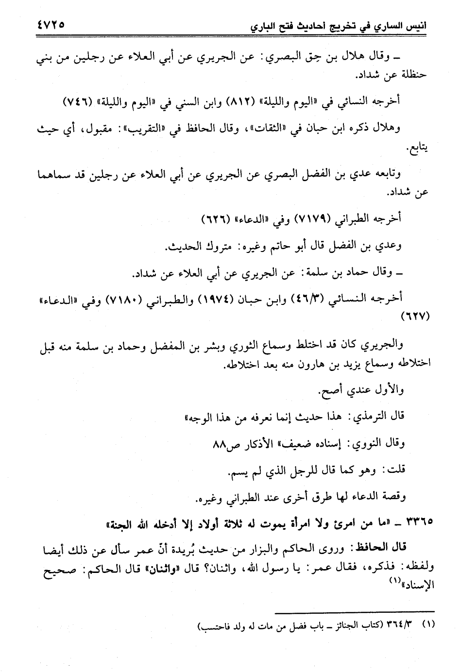 3365 - "ما من امرئ ولا امرأة يموت له ثلاثة أولاد إلا أدخله الله الجنة"