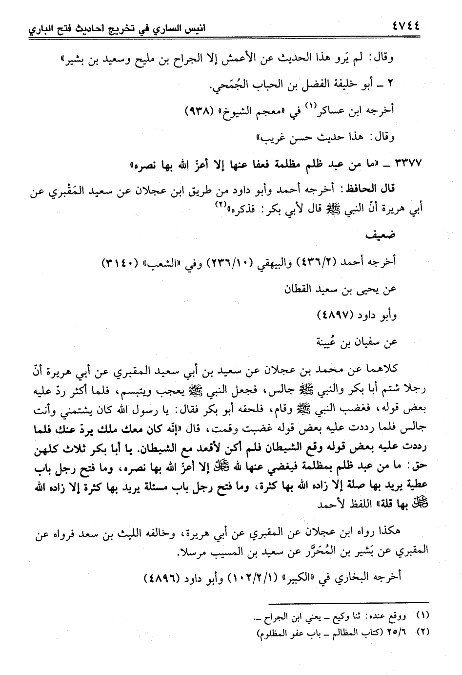 3377 - "ما من عبد ظلم مظلمة فعفا عنها إلا أعزّ الله بها نصره"