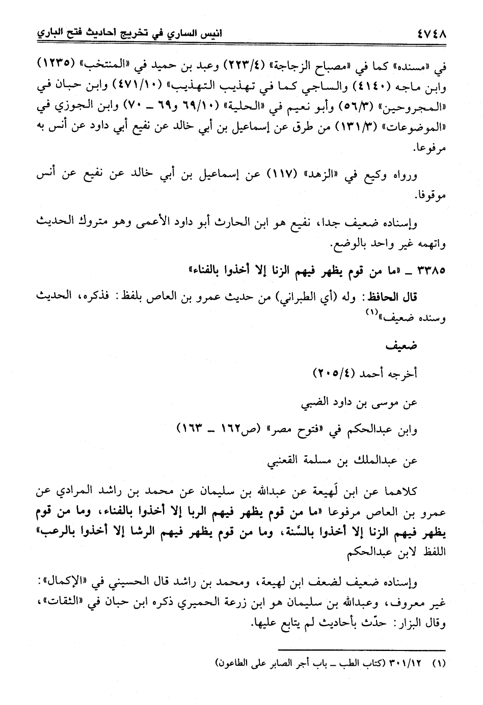 3385 - "ما من قوم يظهر فيهم الزنا إلا أخذوا بالفناء"